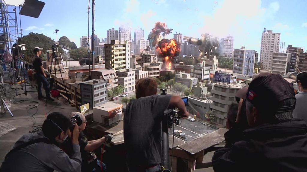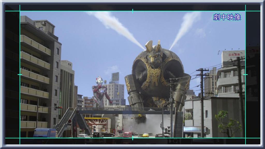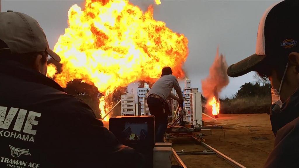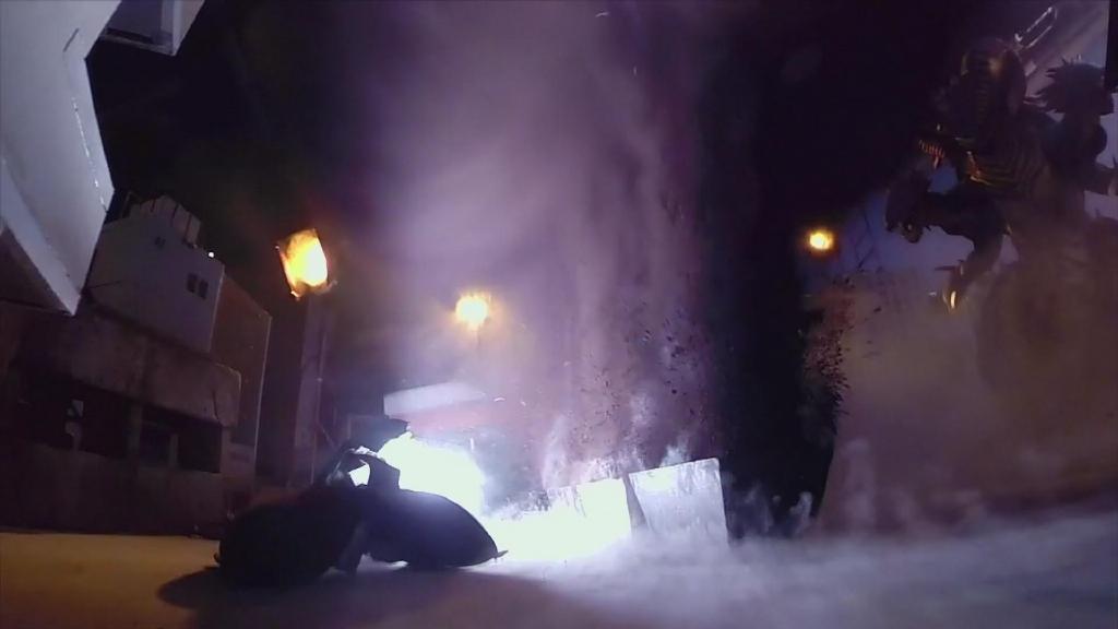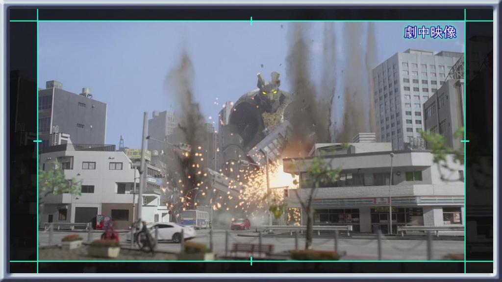 等迪玛加一边走路一边爆破,镜头角度也一边在调整,就得到大魄力的巨大化视角啦。