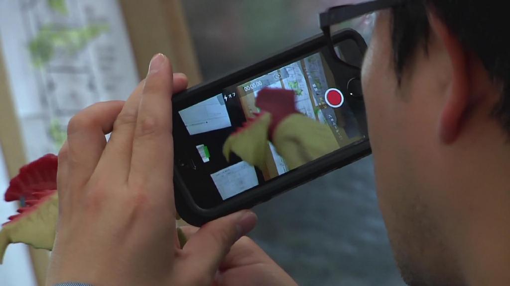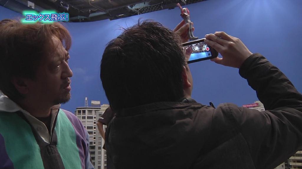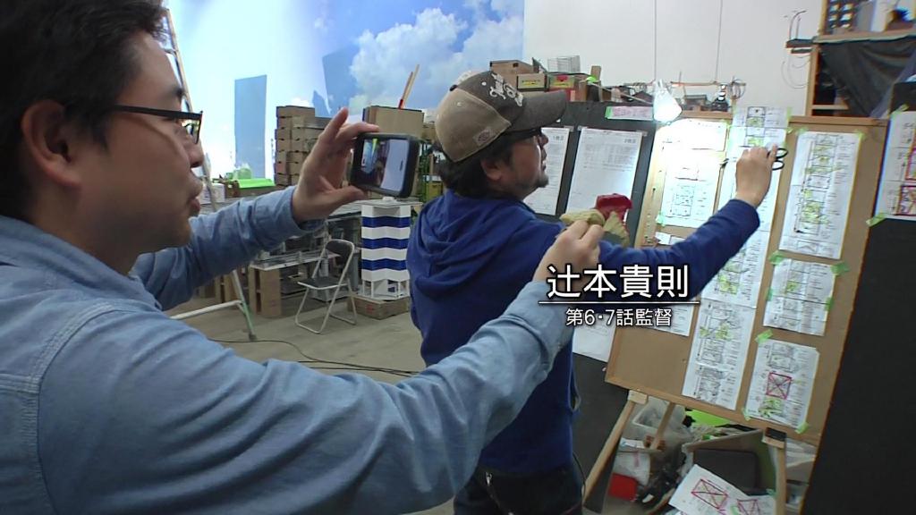 第二话Xio天空火枪手与巴顿空战的镜头:根据分镜田口一手拿着智能手机一手拿着巴顿软胶,与好基友辻本贵则一起“玩”拍。