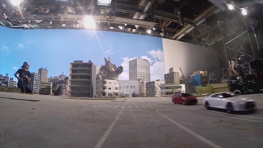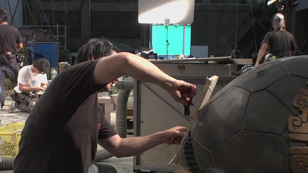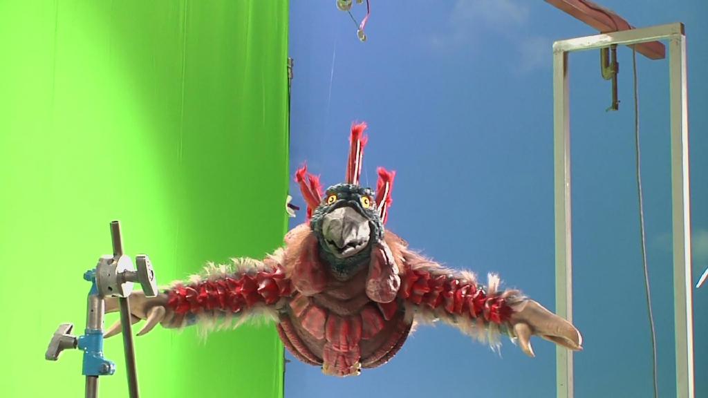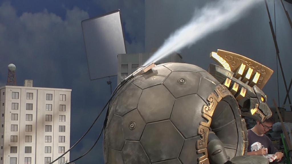 这段只有几秒的新技能是在拿绿幕棚用泰莱斯通的旋转模型拍摄的,再与之前拍摄的画面合成得到最终的新技能镜头。