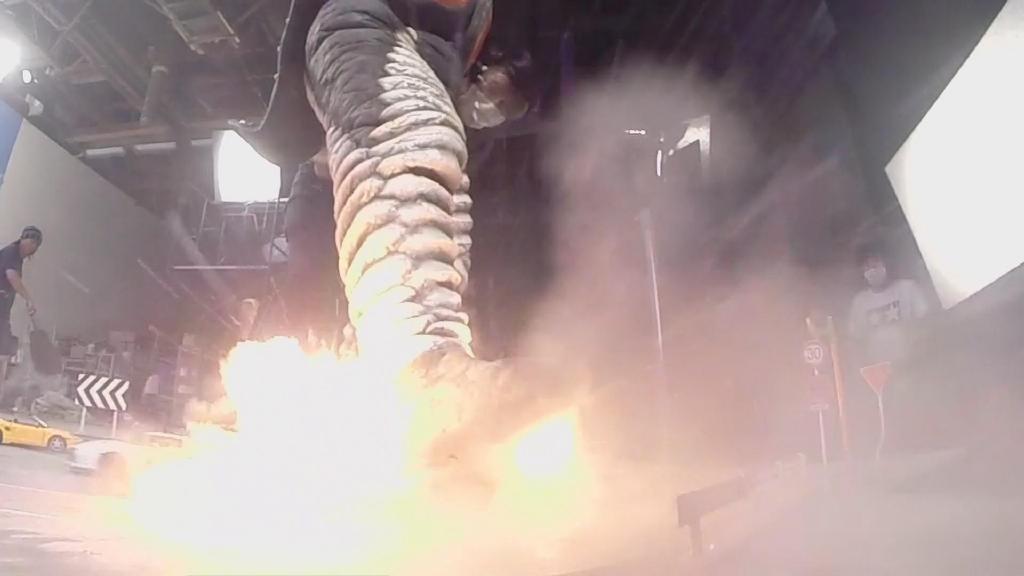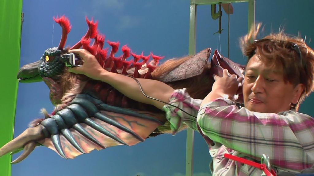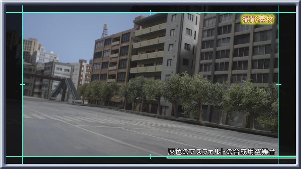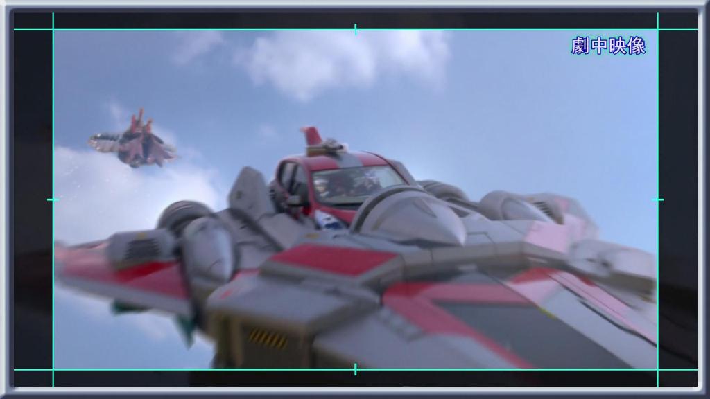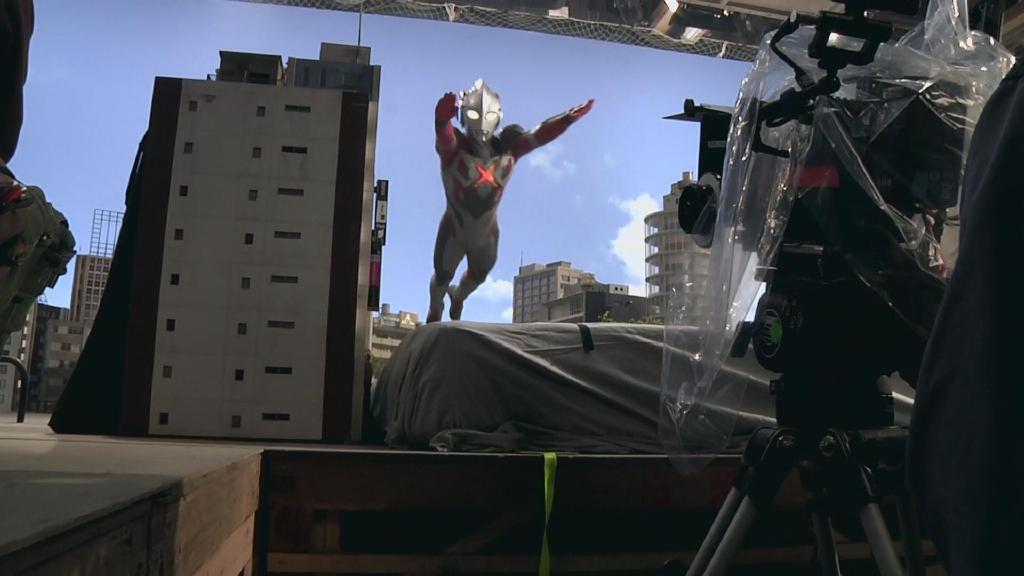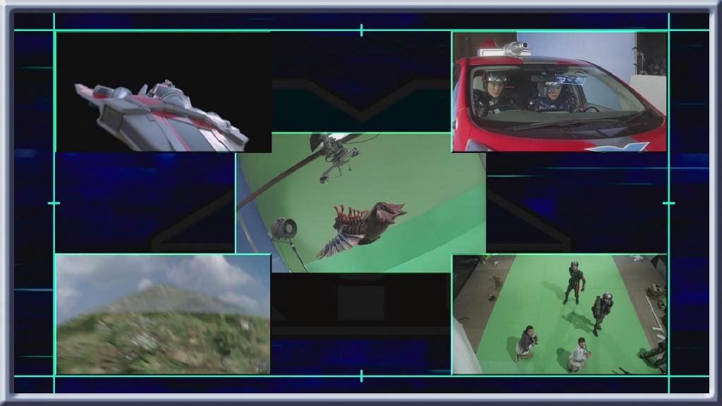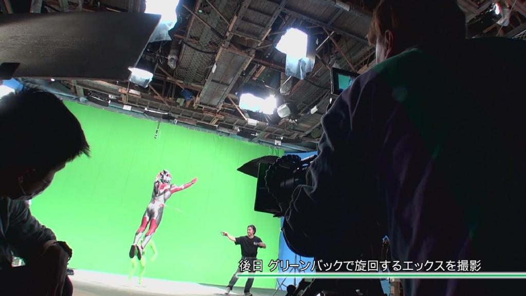 第一话艾克斯飞走的画面:依旧是结合现场扑街与绿幕飞走合成。