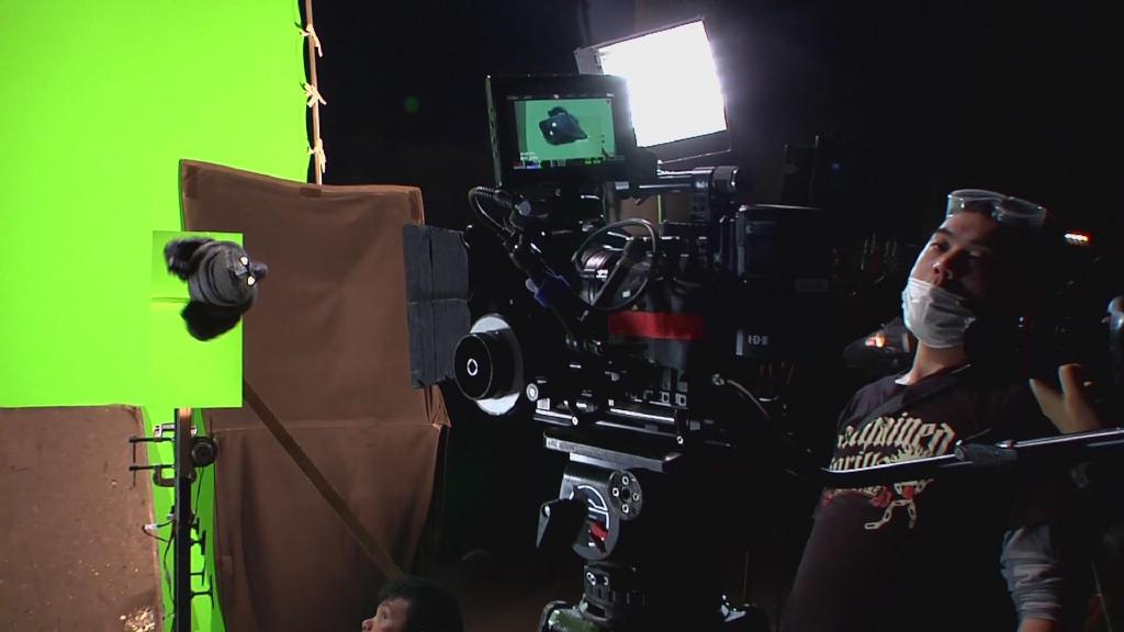 然后正式拍摄中是在绿幕棚。