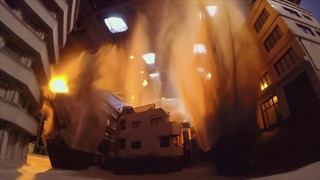 最后再结合先前拍摄的普通路面素材就实现了碎开路面的画面。