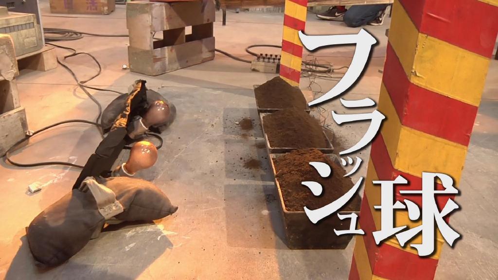 接着是另一种省预算的爆破法:在盆里埋点火药再盖上土,然后在土盆后面装上闪光球(灯泡)。