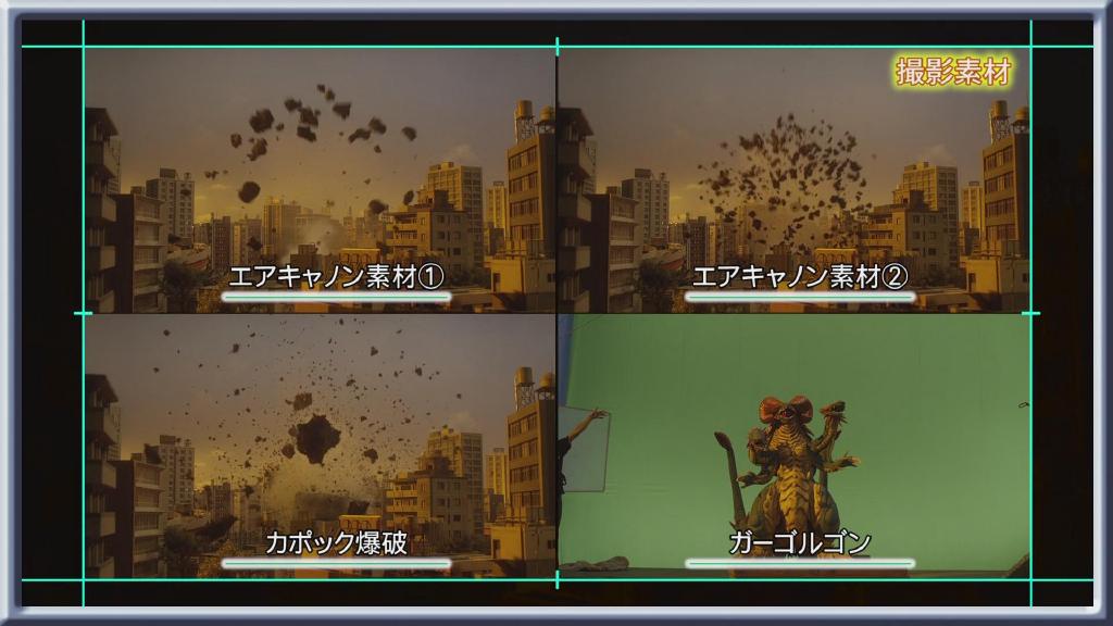 加戈尔贡爆炸的镜头:由于预算低,不能像以前那么浪费钱再去做个加戈尔贡的模型拿来炸,所以今次直接炸的是大土块,由于第一次炸土块没有炸碎导致后面又用空气炮重新炸小碎块补充素材。