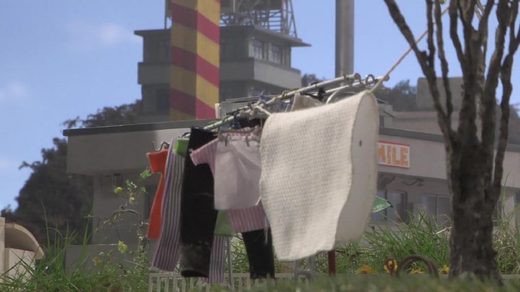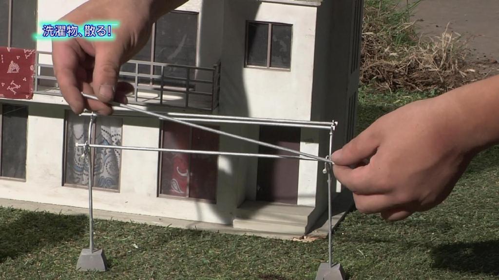第8话开头艾克斯吃瘪扑街的画面:摆好晾衣架和各种小衣服埋好土。